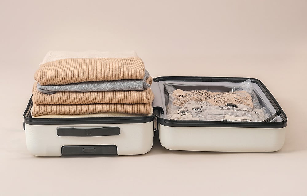 - Reduces clothing volume by up to 80%.