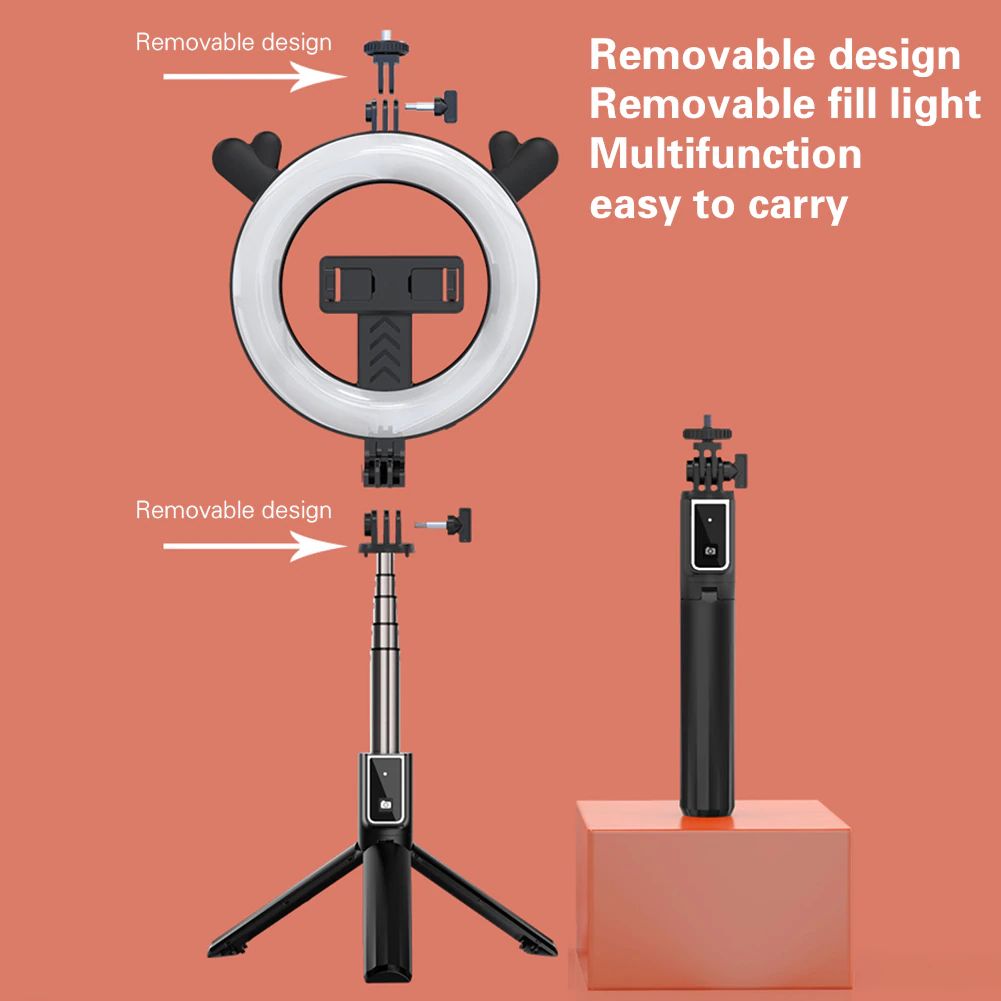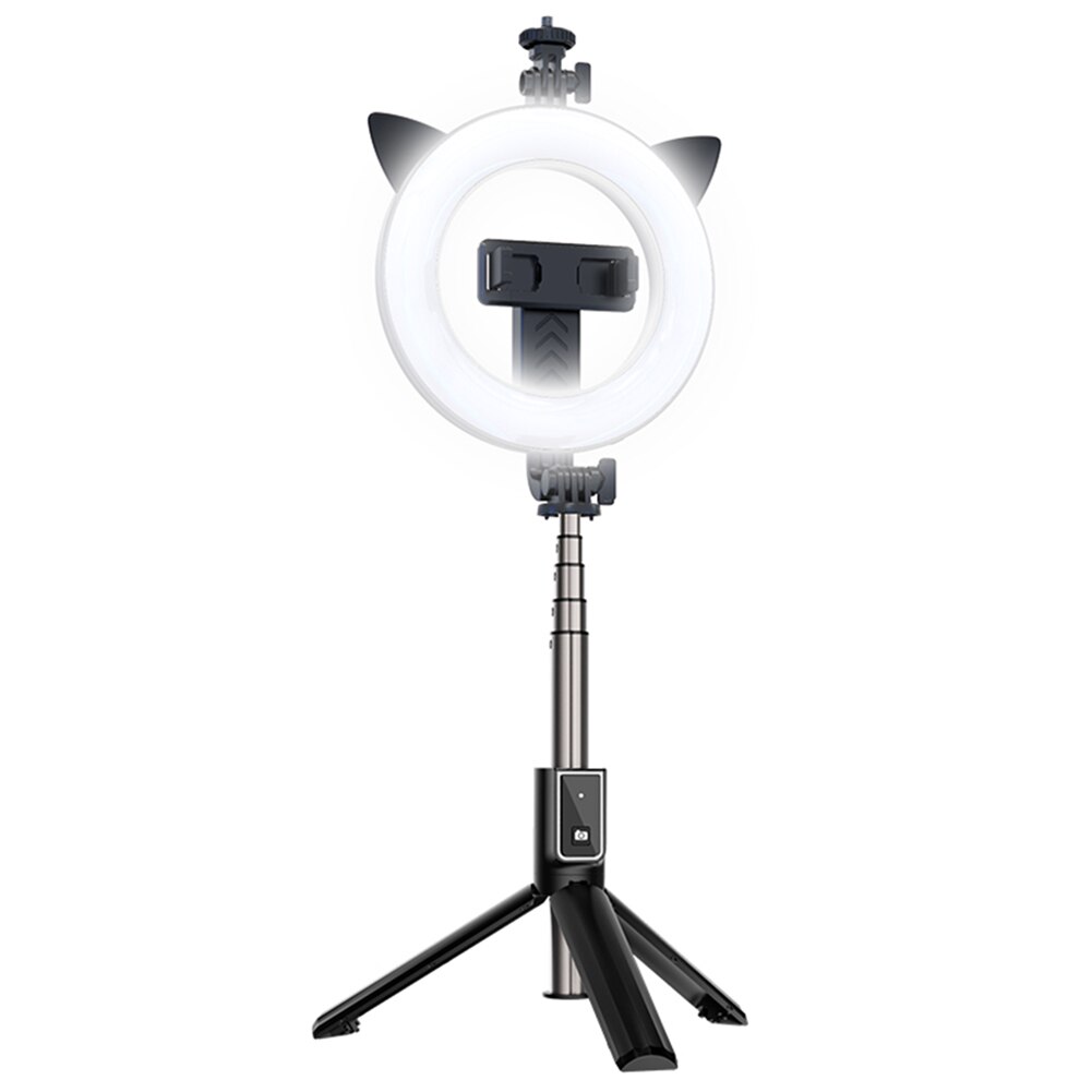 LED Selfie Ring Desktop Light Flash Tripod with Phone Holder and Bluetooth Remote Control (P40D-3), Black
