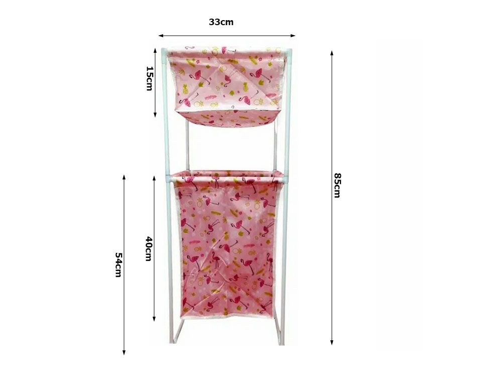 The stand has a stable construction and can be used in two variants: with a shelf on top or a single large basket.