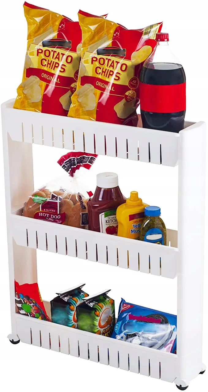 Storage Trolley on Wheels, Rolling Cart Organizer Shelf for Bathroom Kitchen Laundry Room Narrow Places, White