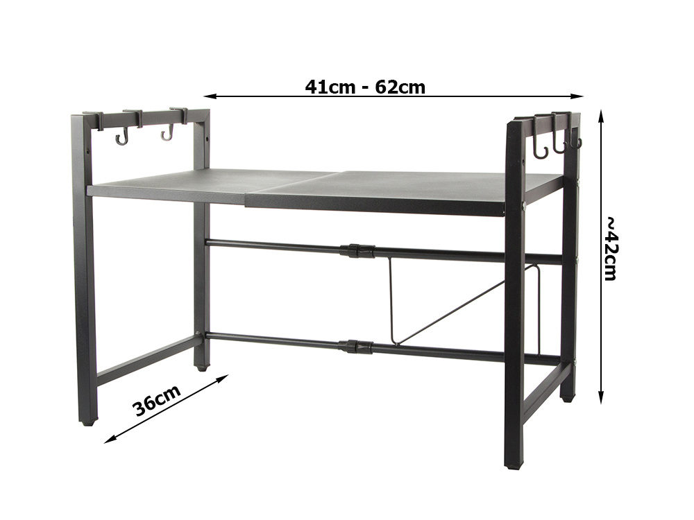 The adjustable kitchen shelf for the microwave, will save a lot of space in the kitchen. It allows you to create additional space for storing spices as well as other kitchen utensils, e.g. kettle, coffee machine, toaster, etc.