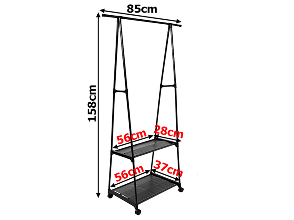 Introducing a functional clothes rack with two shelves that is perfect for any home, offering not only extra storage space, but also an aesthetic design that will fit into any interior. This versatile rack is the perfect storage solution for clothes, shoes, handbags and other accessories, keeping your belongings organised and easily accessible.