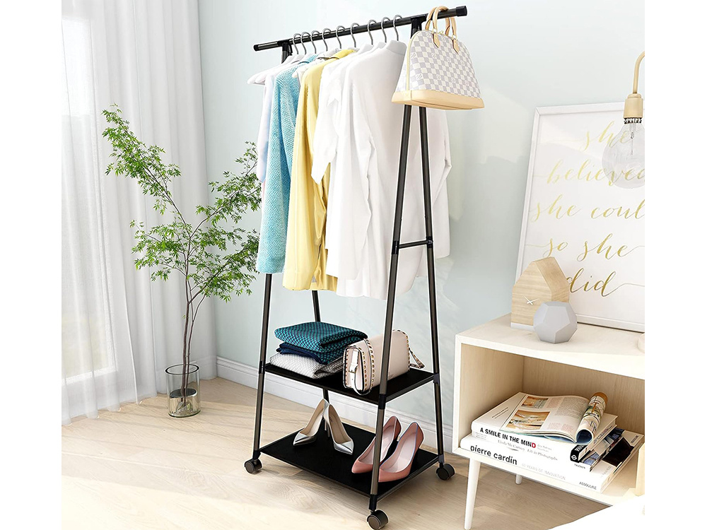 In the bedroom, a clothes rack is the perfect solution to help keep things tidy. You can store your everyday clothes on it and place shoes, handbags or boxes of accessories on the shelves. This way, everything will have its place and you will gain more space in your wardrobe.