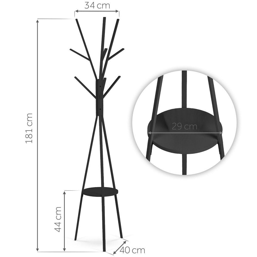 - Functional design: Multi-level hooks and an additional shelf for storage.