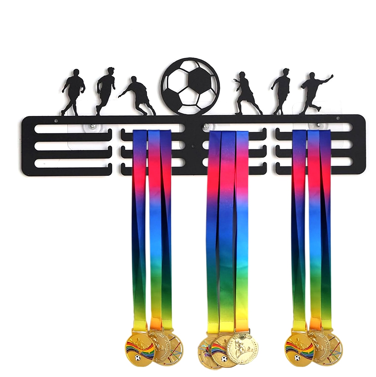 Durable steel medal holder for displaying your sports achievements. Perfect for showcasing your awards at home or in the gym. The solid construction is designed for wall mounting, and all necessary installation hardware is included: screws, wall plugs, and washers.