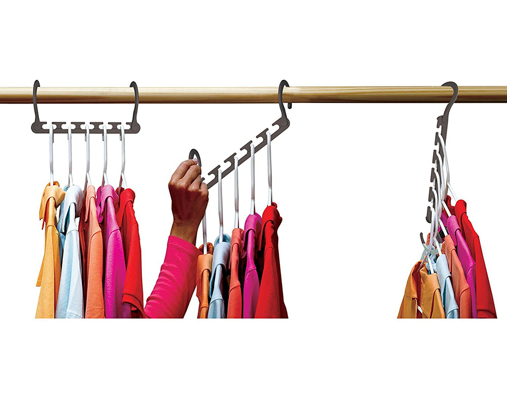 The hanger organizer is the perfect item for your home or apartment. It will help you quickly and easily tidy up the clothes in your closet. Thanks to them, you can hang a lot of clothes on hangers without taking up the entire wardrobe.