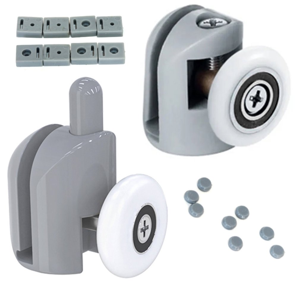 Set of 8 single rollers for shower cabins. Fits most types of shower cabins. Made of stainless steel, additionally chrome-plated. Sturdy wheels made of wear-resistant plastic.