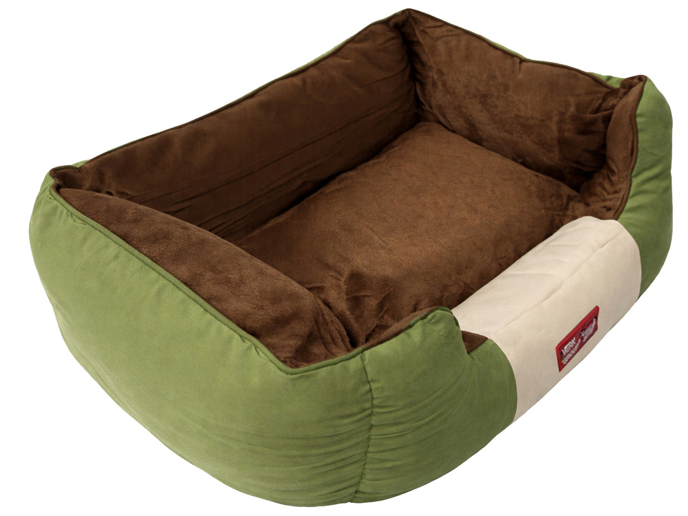 Cozy Bolster Dog Bed for Small Pets with Non-Slip Bottom, Size S, Green