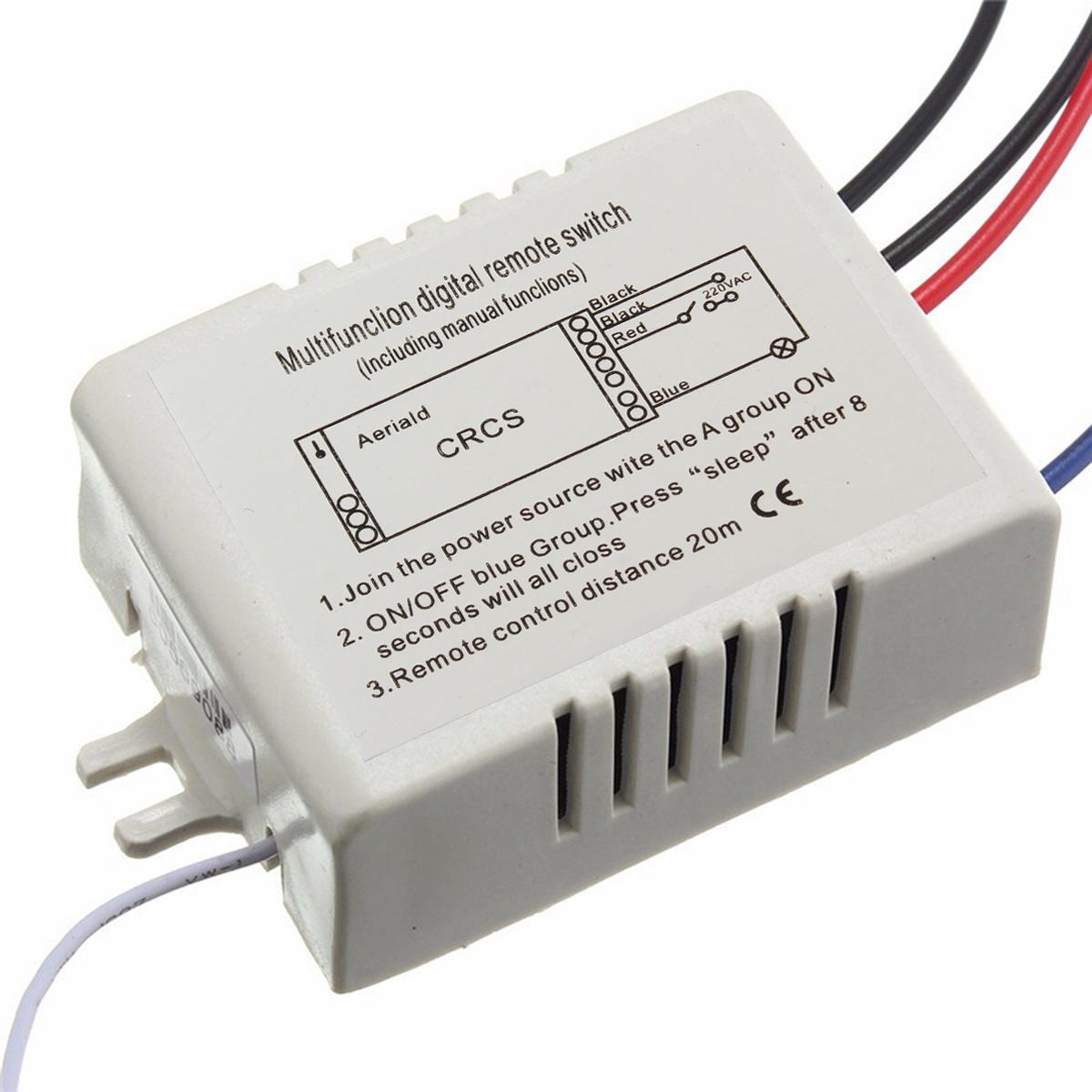 Wireless switch for controlling lighting and other 230V electrical devices. Includes a convenient remote control with radio signal, offering up to 20 meters range in open space. Ideal for switching lights, air conditioners, heaters, and more, with a maximum load of 1000W. All necessary mounting accessories and wiring are included for easy installation.