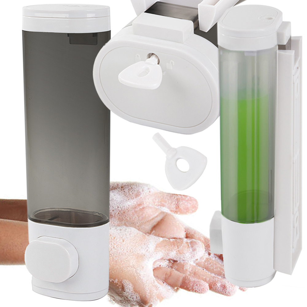 The wall-mounted liquid soap dispenser with push button (300 ml, white) is a convenient and practical solution for both home and public spaces. Suitable for liquid soap, shower gel, shampoo, or disinfectant fluids. Dispenses approximately 1 ml of liquid per press.