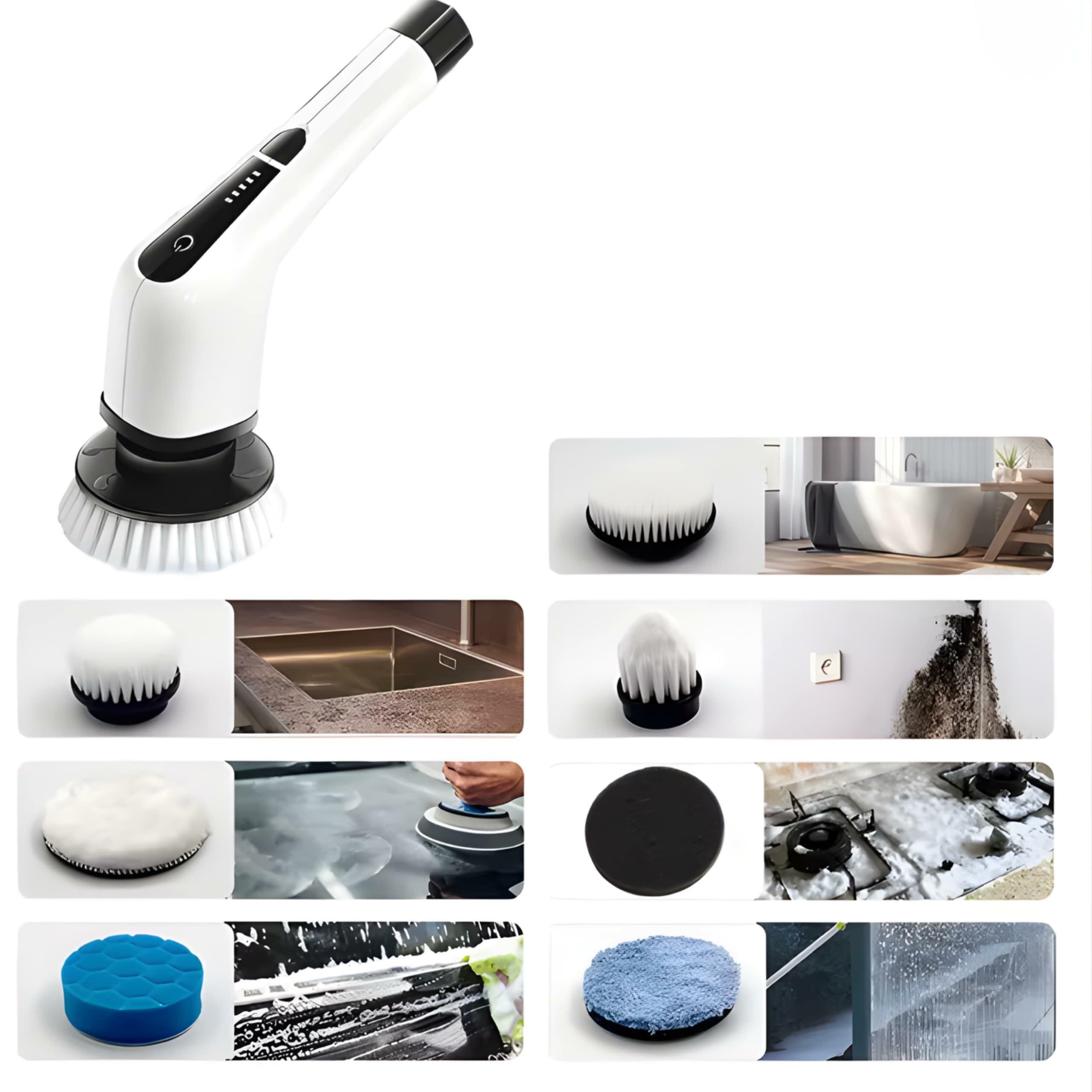 - 9 Interchangeable Brush Heads: Includes a variety of heads for flat surfaces, corners, polishing, and more, tackling any cleaning challenge.