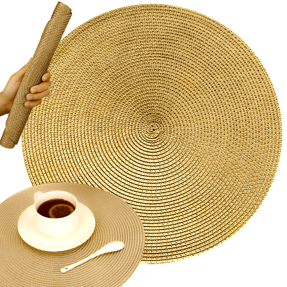 This round woven placemat combines elegance and practicality, protecting your table from scratches and spills while enhancing your dining decor. Its high-quality synthetic material ensures durability and long-lasting use.