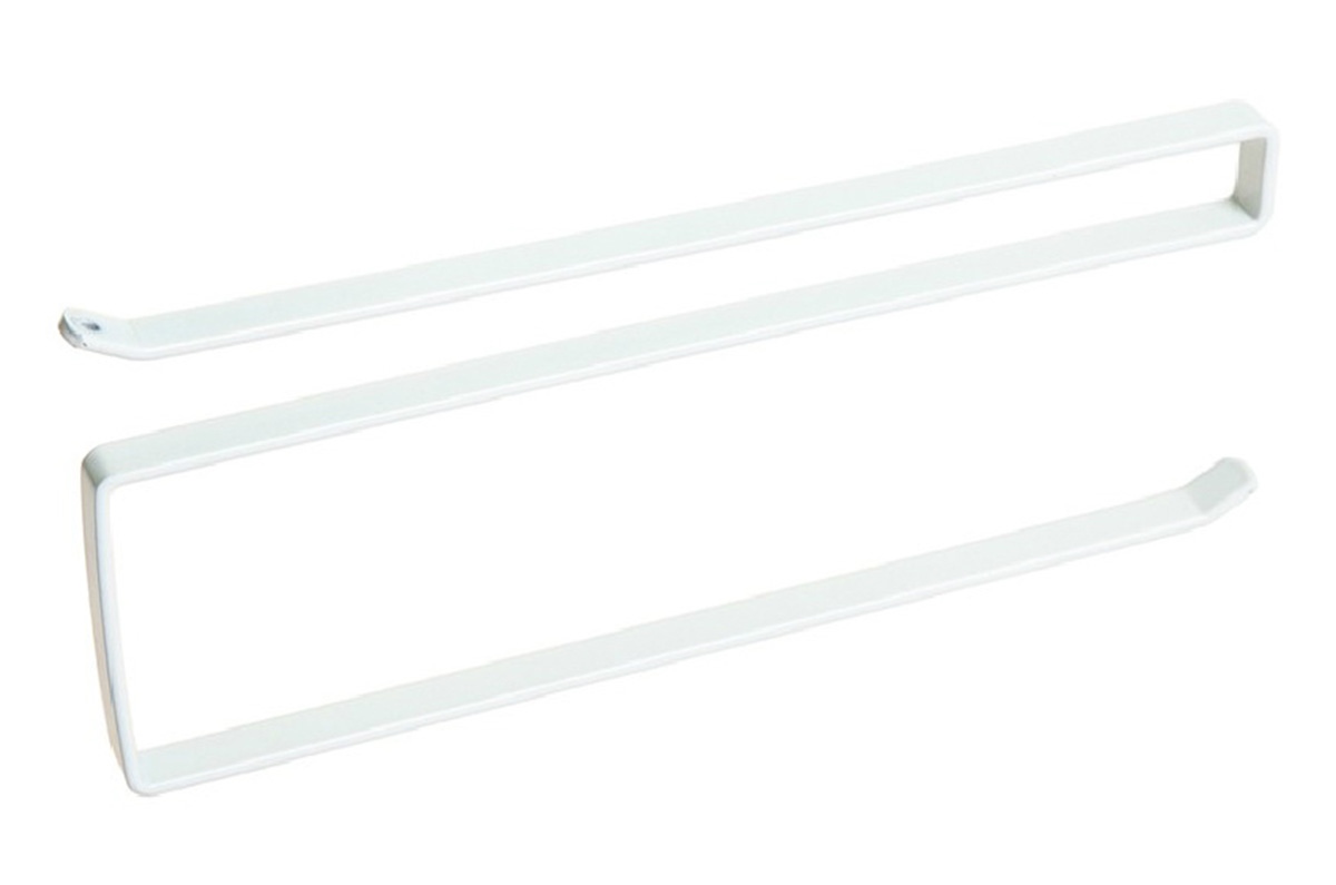 Convenient paper towel holder. Can be hung on door fronts or shelves (horizontally or vertically). It is perfect for tight kitchens, saving valuable space on the countertop. An additional screw hole allows the hanger to be permanently installed.