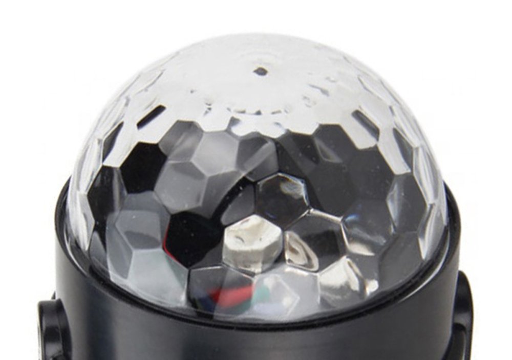 This LED disco ball with RGB lighting and a built-in sound sensor delivers stunning light effects that sync to your music. Enjoy 7 different lighting modes with various color combinations, easily controlled via panel buttons or the included remote control. Three powerful LEDs (red, blue, green) and a rotating motor create dynamic, moving patterns for an authentic party atmosphere. Perfect for discos, clubs, bars, home parties, and DJs.