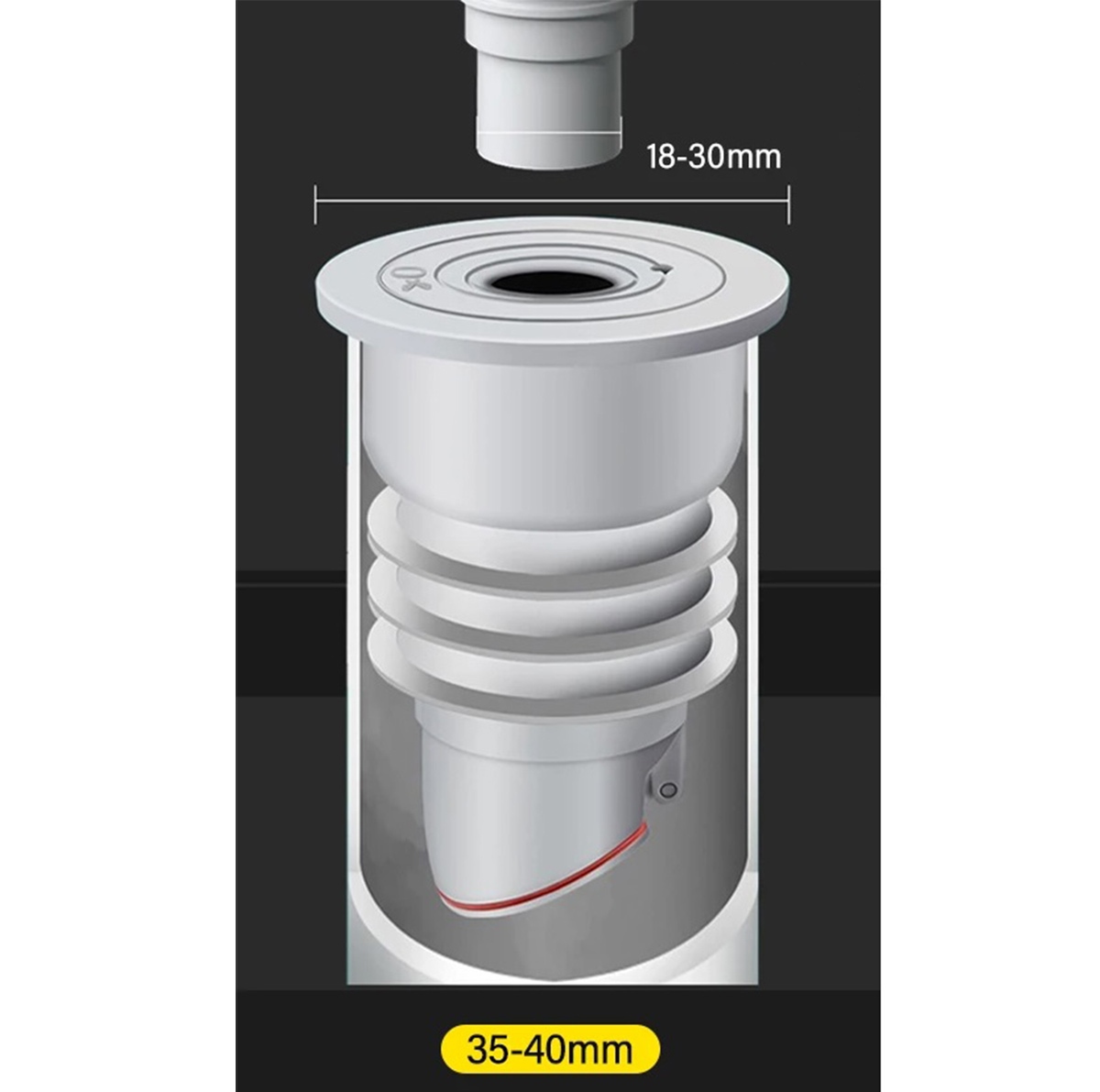 - Top section: adjustable for 18–30 mm pipes.
