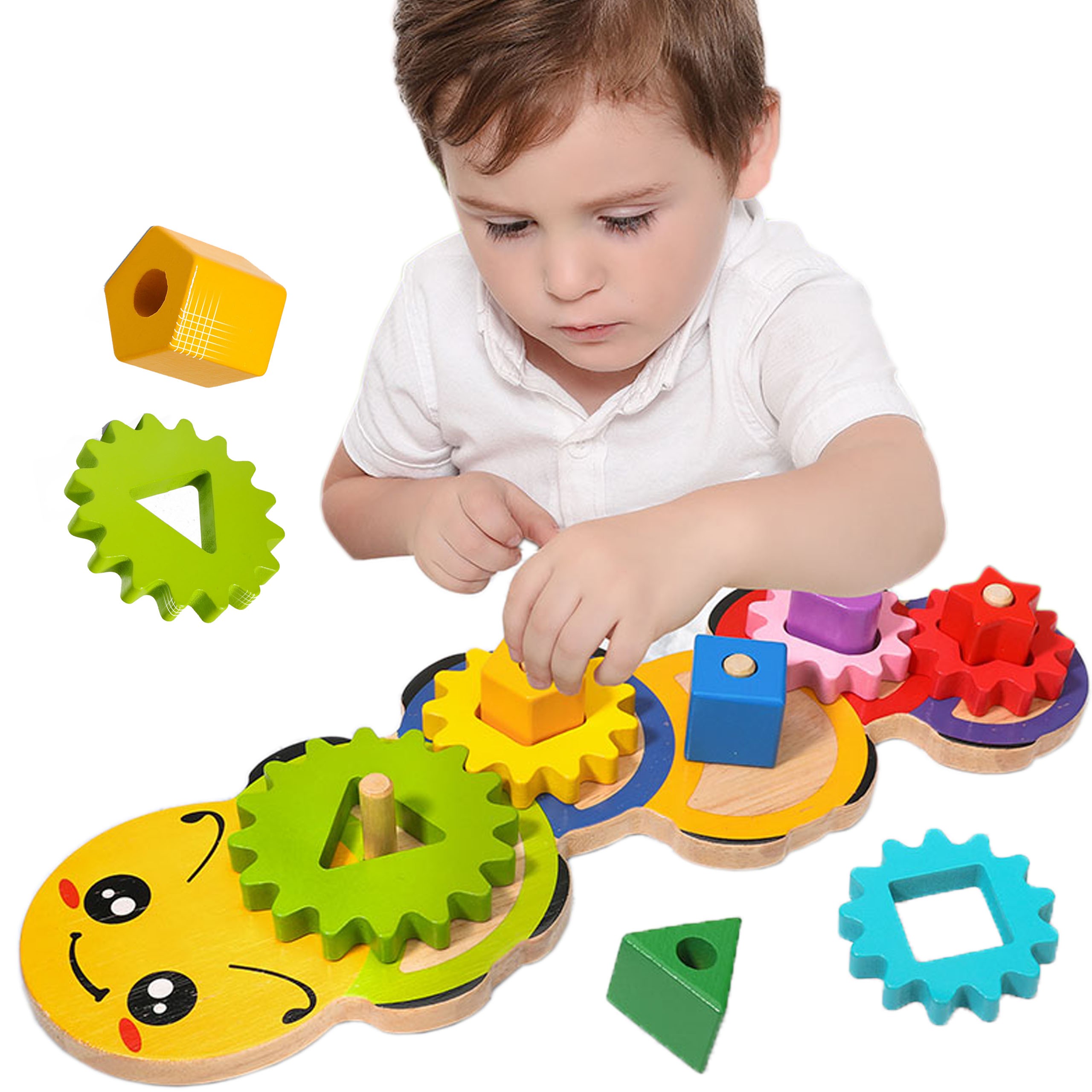 The set includes a wooden base shaped like a caterpillar and several colorful gear-shaped blocks with different geometric cutouts.Is it suitable as a birthday gift?