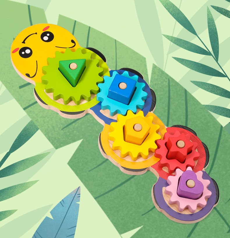 There is no better way to learn than through fun. With this caterpillar toy, children naturally begin to distinguish between different colors and geometric figures, as each gear features a unique shape and vibrant color.