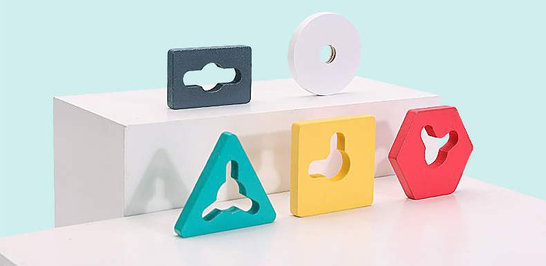 This wooden toy is designed to support early childhood development by offering a safe and tactile way to practice finger dexterity and spatial awareness.