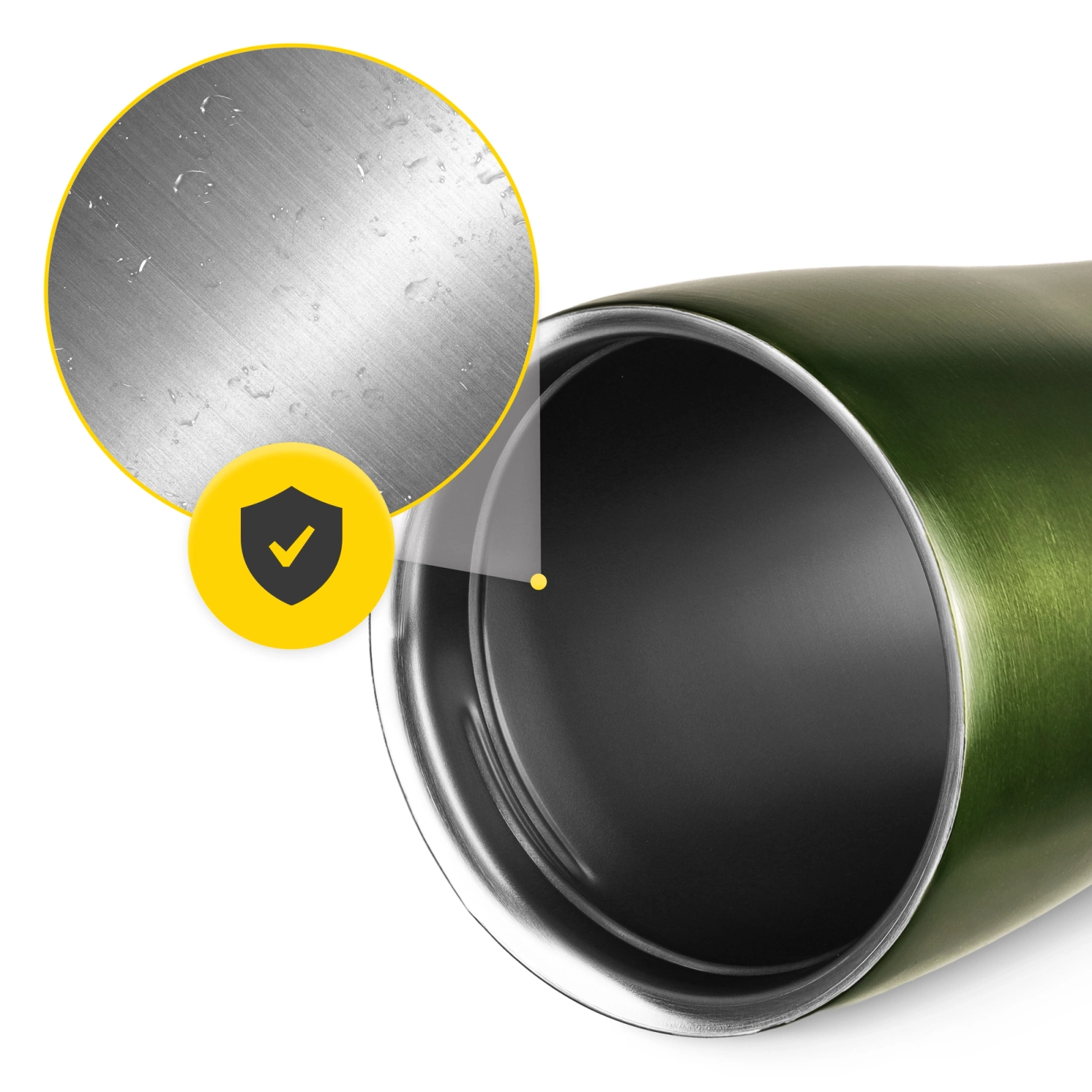 The mug is crafted from durable 304 stainless steel, ensuring longevity and resistance to daily wear and tear. The screw-on lid is made from PP plastic, and the additional seal is food-grade silicone. All materials are completely safe for contact with food and beverages.