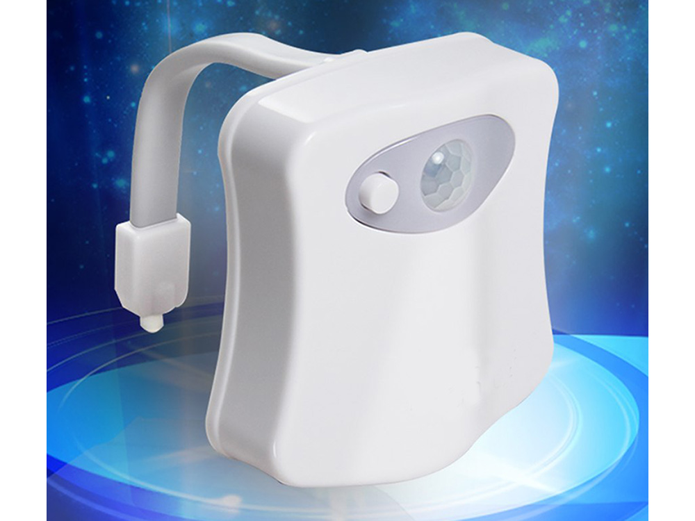 The toilet bowl light is a practical gadget. It illuminates the toilet so that we do not have to switch on the bright, often glaring light in the bathroom at night. It has a motion sensor that reacts when a person is nearby. The lamp is efficient and emits bright coloured light. With the push of a button, the lamp can be switched off completely.