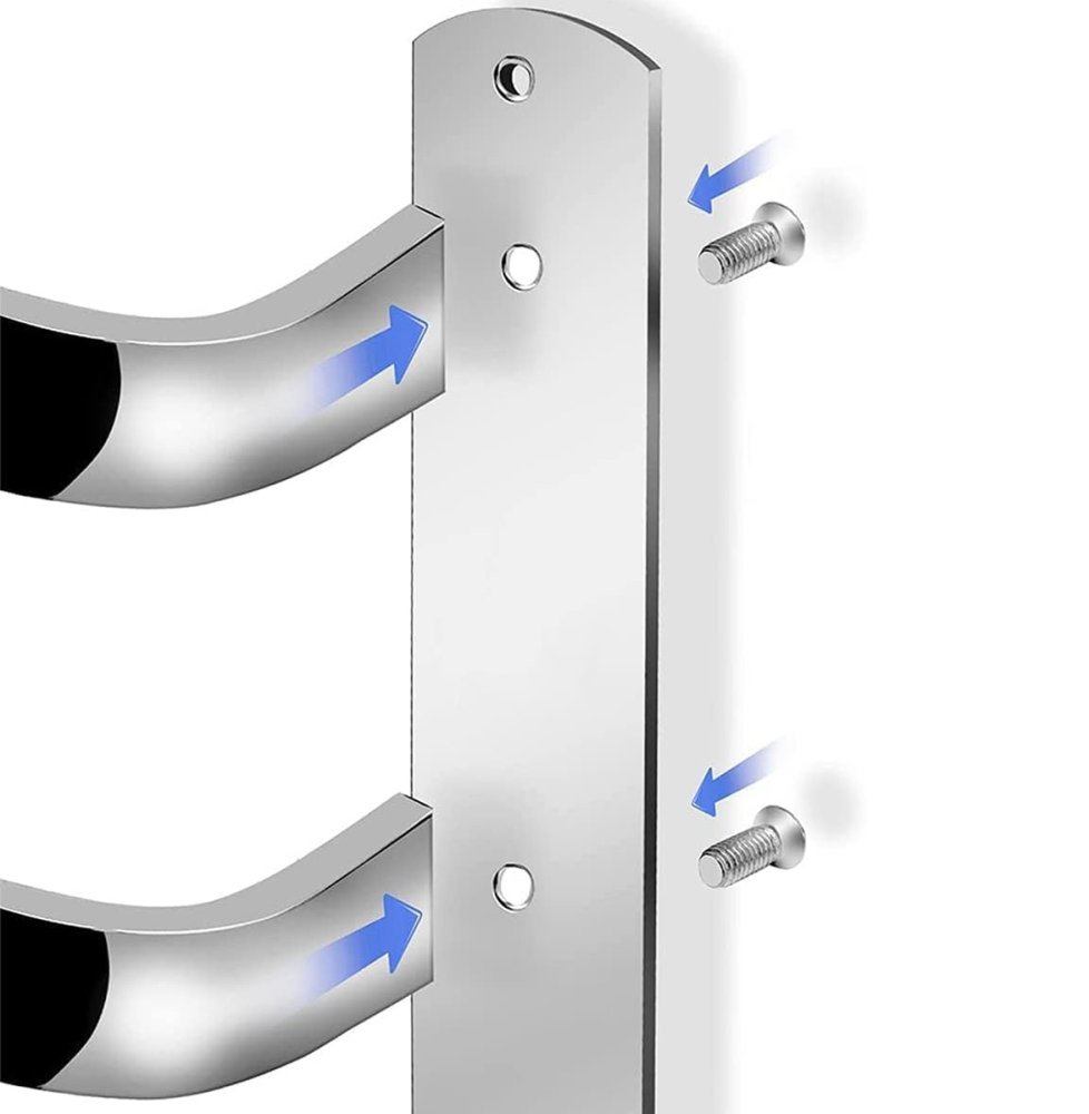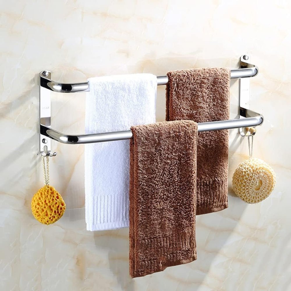 Metal bathroom hanger in loft style. Made of aluminum. The product is resistant to moisture and abrasion, which ensures long and trouble-free use. The holder has two arms for hanging towels. Additional hooks (two pairs) on the bottom of the structure. Standard screw assembly (all elements included).