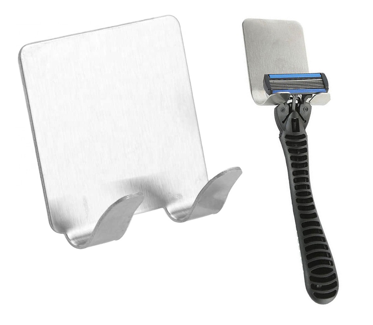 Razor Holder Wall Hanger with Two Hooks, Silver