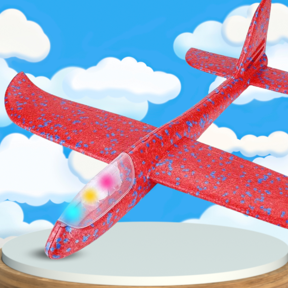 Foam Glider Airplane with Launcher Gun and LED Lights, Red