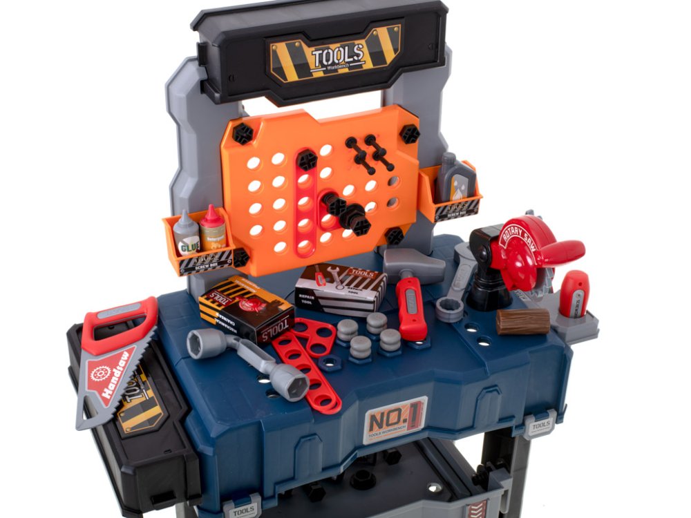 The whole set is packed in a suitcase resembling a real suitcase of an experienced craftsman. The suitcase easily transforms into a table with many different places to store things. Playing with a set has a great influence on the development of manual skills, creative thinking and imagination.
