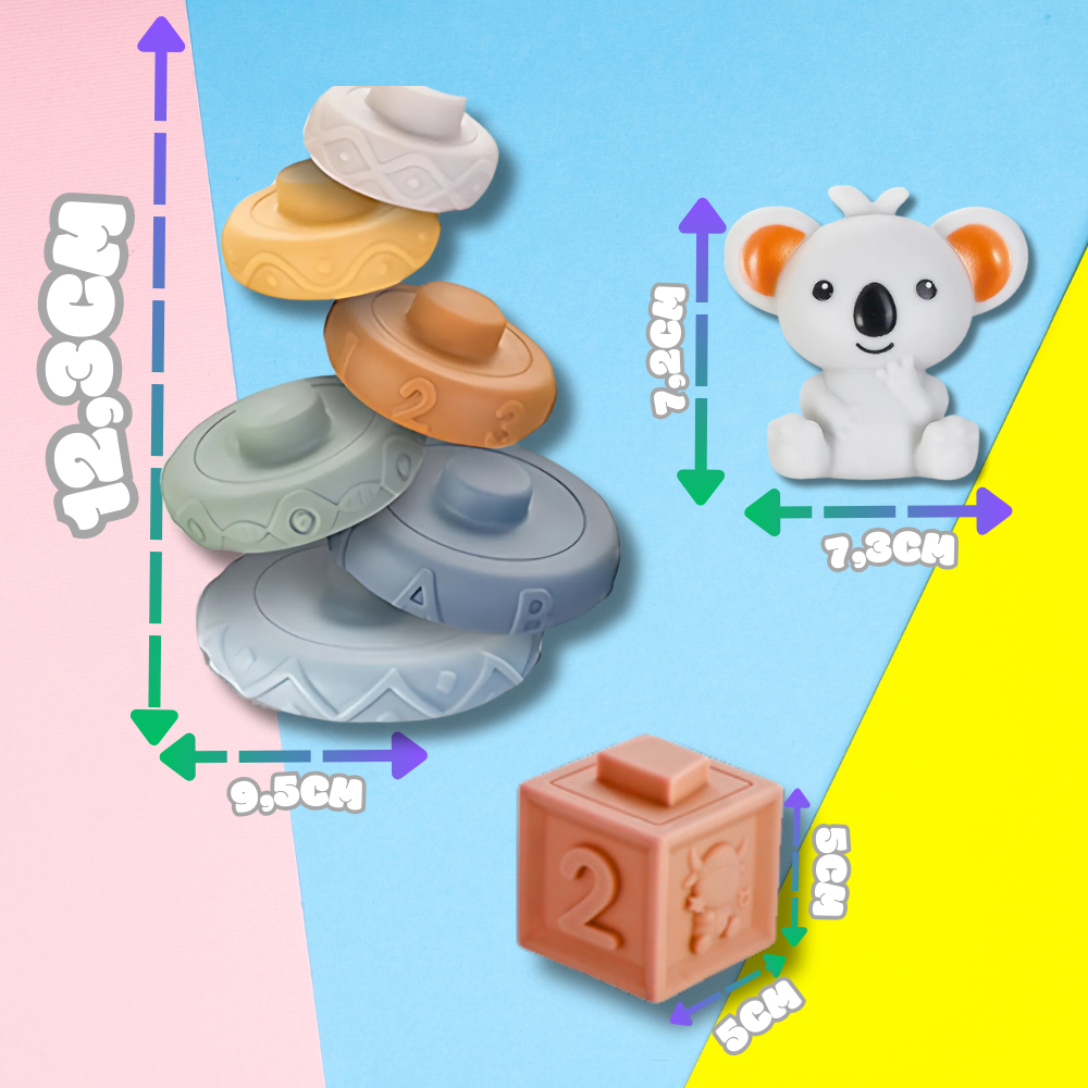 Discover a world of fun and learning with our Soft Sensory Stacking Blocks! This unique 13-piece set is designed for your little one's development, offering not just the joy of building but also stimulating their senses and enhancing motor skills.