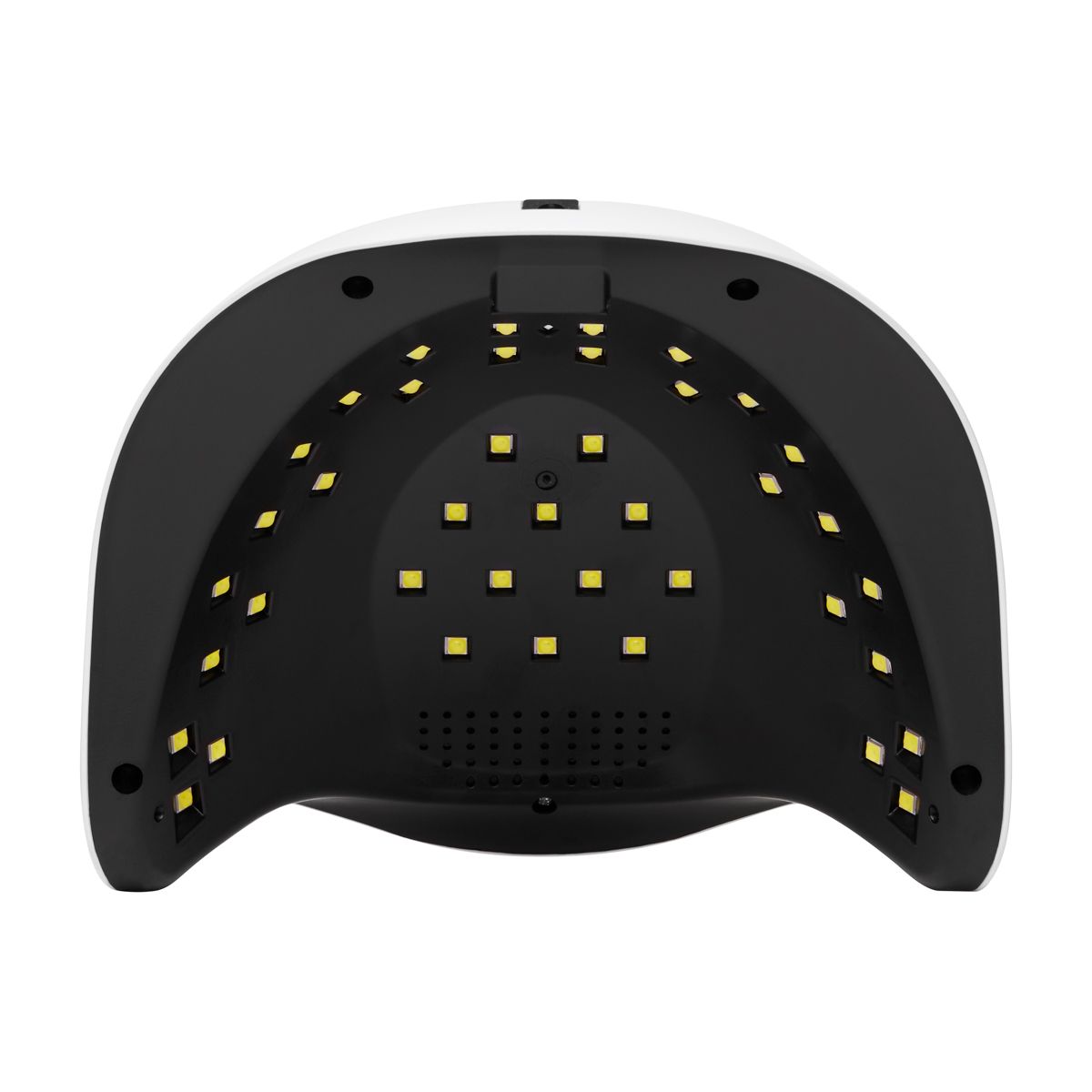 GLOW V1 UV/LED 168 W — powerful manicure and pedicure lamp, equipped with well-designed features for convenient and fast curing of gels, hybrid polishes, and other light-curable materials. Dual LED technology and 42 precisely positioned LEDs with no “dead zones” ensure even and complete curing. The closed-body design (“booth”) helps achieve precise and uniform results both in salons and at home.