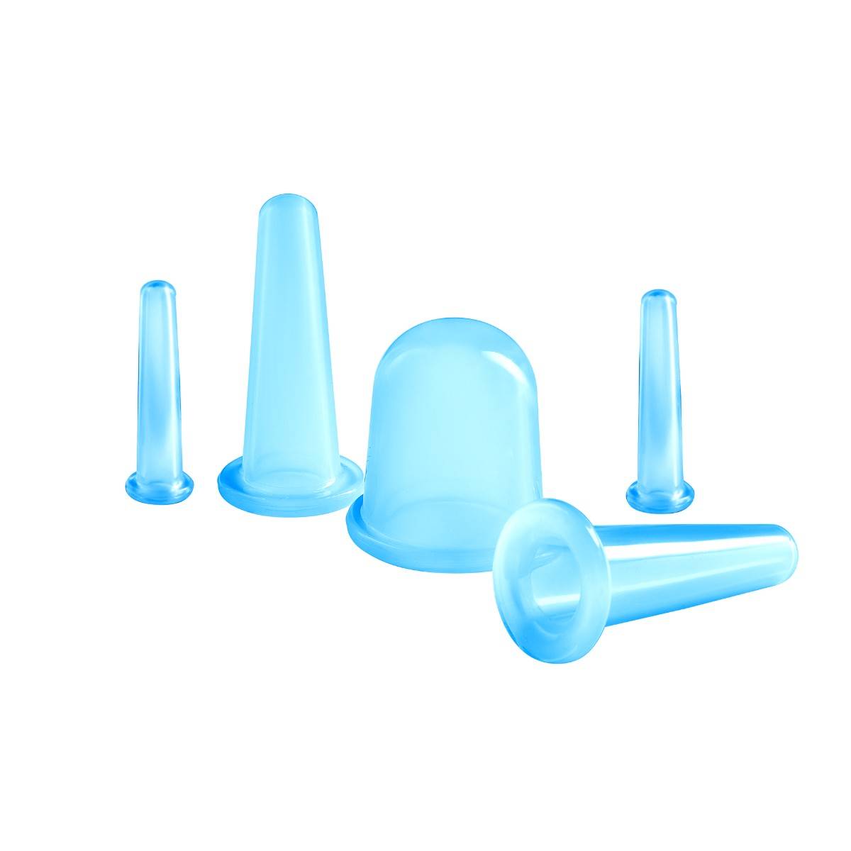 4FIZJO Silicone Acupuncture Vacuum Massage Cupping Bubbles Jars Cups for Face and Body, 5 pcs., Blue