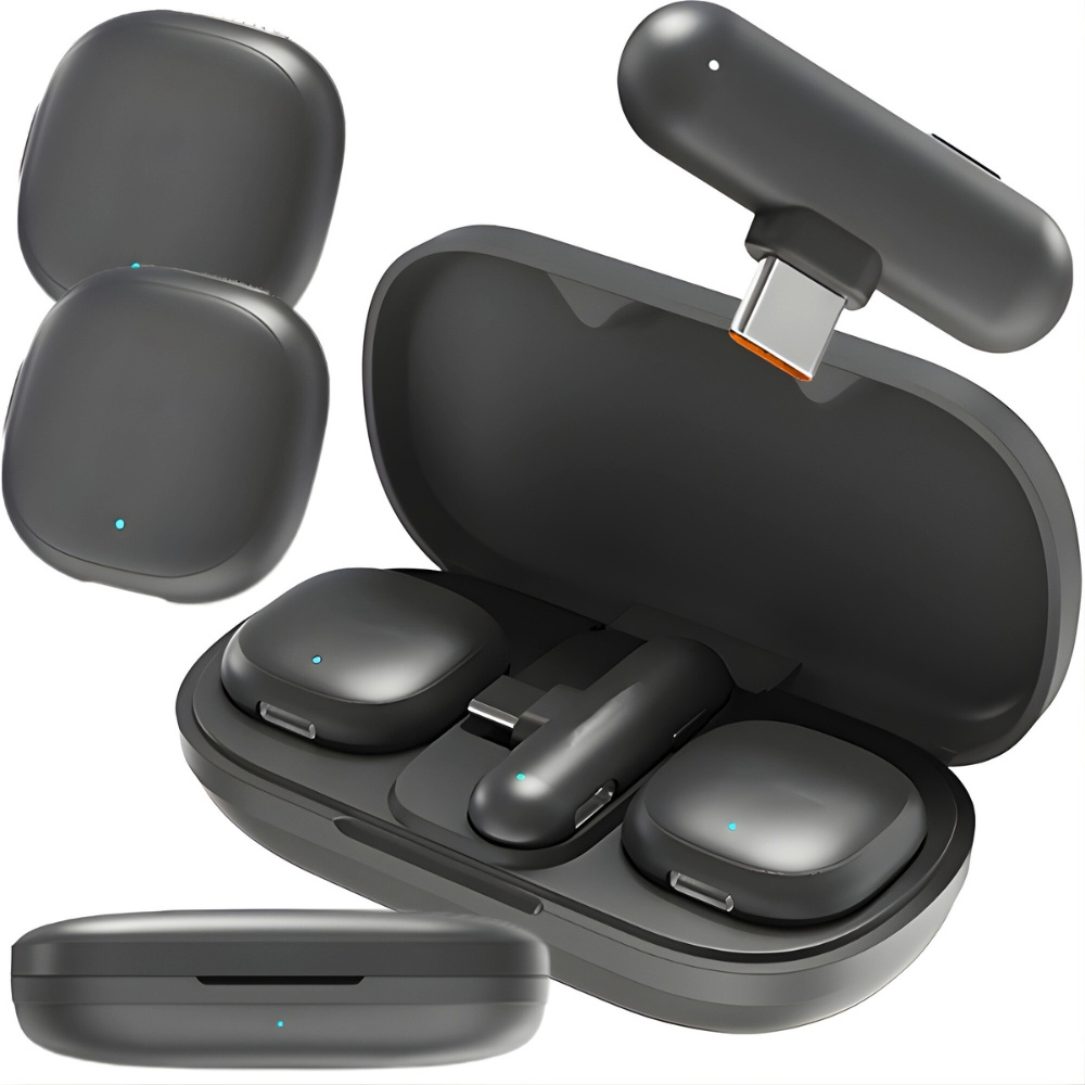 Upgrade your audio with this dual wireless lavalier microphone set featuring a USB-C receiver. Perfect for vlogging, interviews, and streaming on phones.