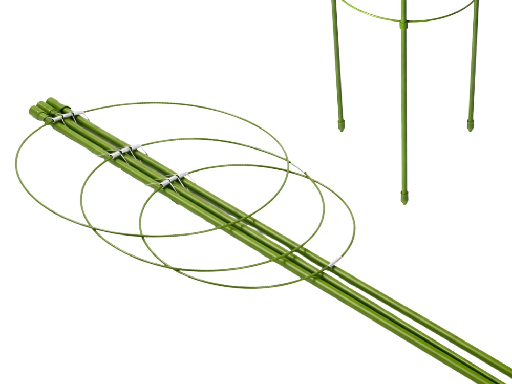 Designed for stability and convenience, the structure relies on solid rods that provide excellent support once placed in the soil. The lightweight yet durable build ensures everyday comfort. Assembly is quick and intuitive—simply place the support next to the plant and adjust the rings without the need for any tools.