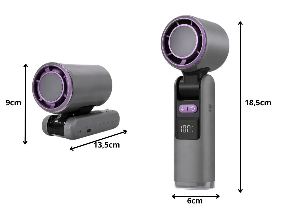The foldable construction allows you to use it as a handheld fan or a stable desk fan. When folded, it takes up minimal space, making storage and transport a breeze. Additionally, the built-in flashlight is a highly practical feature for evening walks, camping, or emergencies. The integrated digital display lets you easily monitor the current speed mode and battery level.