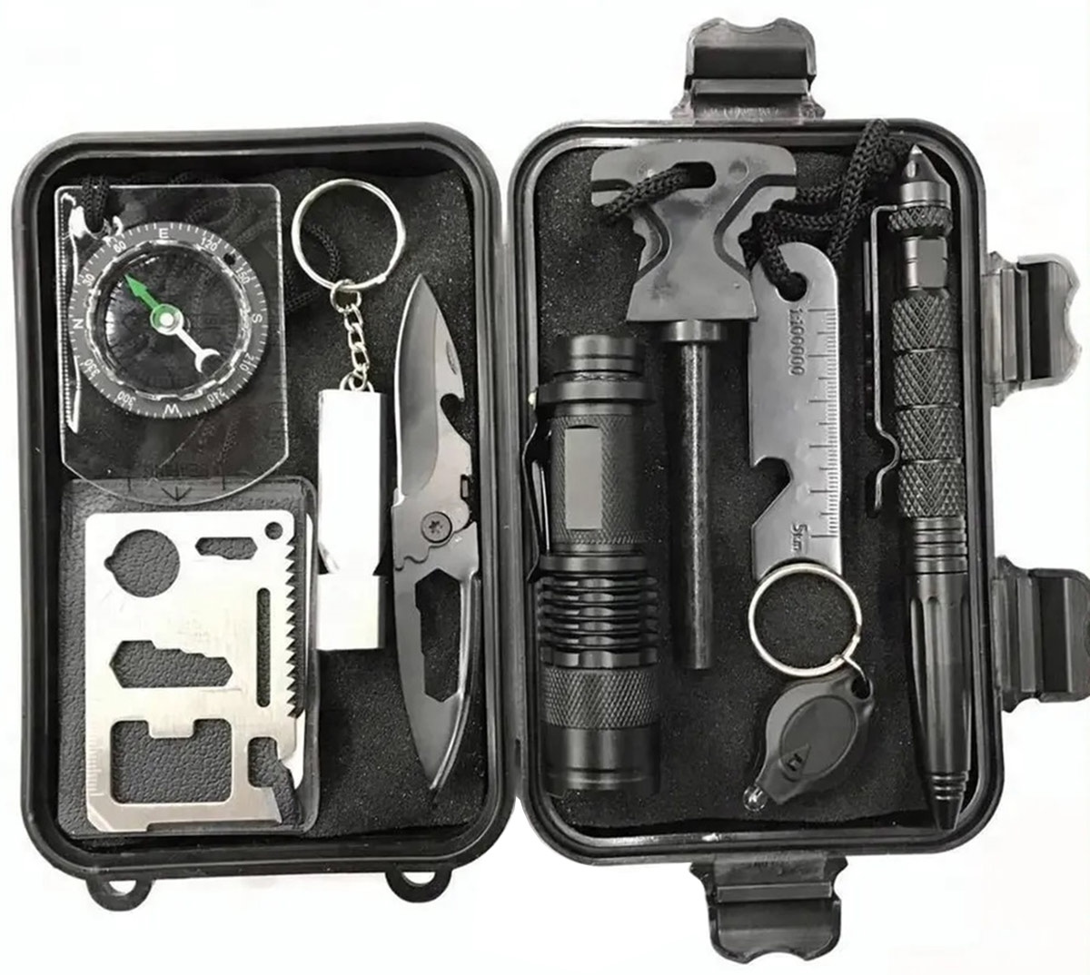 A 10-in-1 survival set in a practical SOS box, you will find many useful tools / items that will help you survive difficult times in the bosom of nature (forest and mountains). It will also be perfect for classic tourist applications (holidays in a tent). Practical, compact case with dimensions: 17 cm x 10.5 cm x 5 cm.