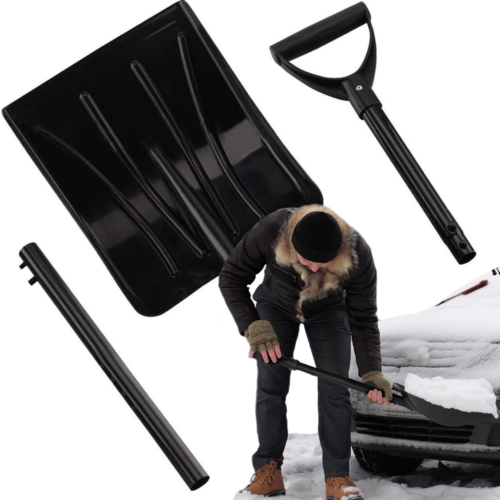 Fold-out design, the shovel consists of three components that are easy to fold and unfold, so it can be conveniently stowed in the boot or slipped under the car seat.