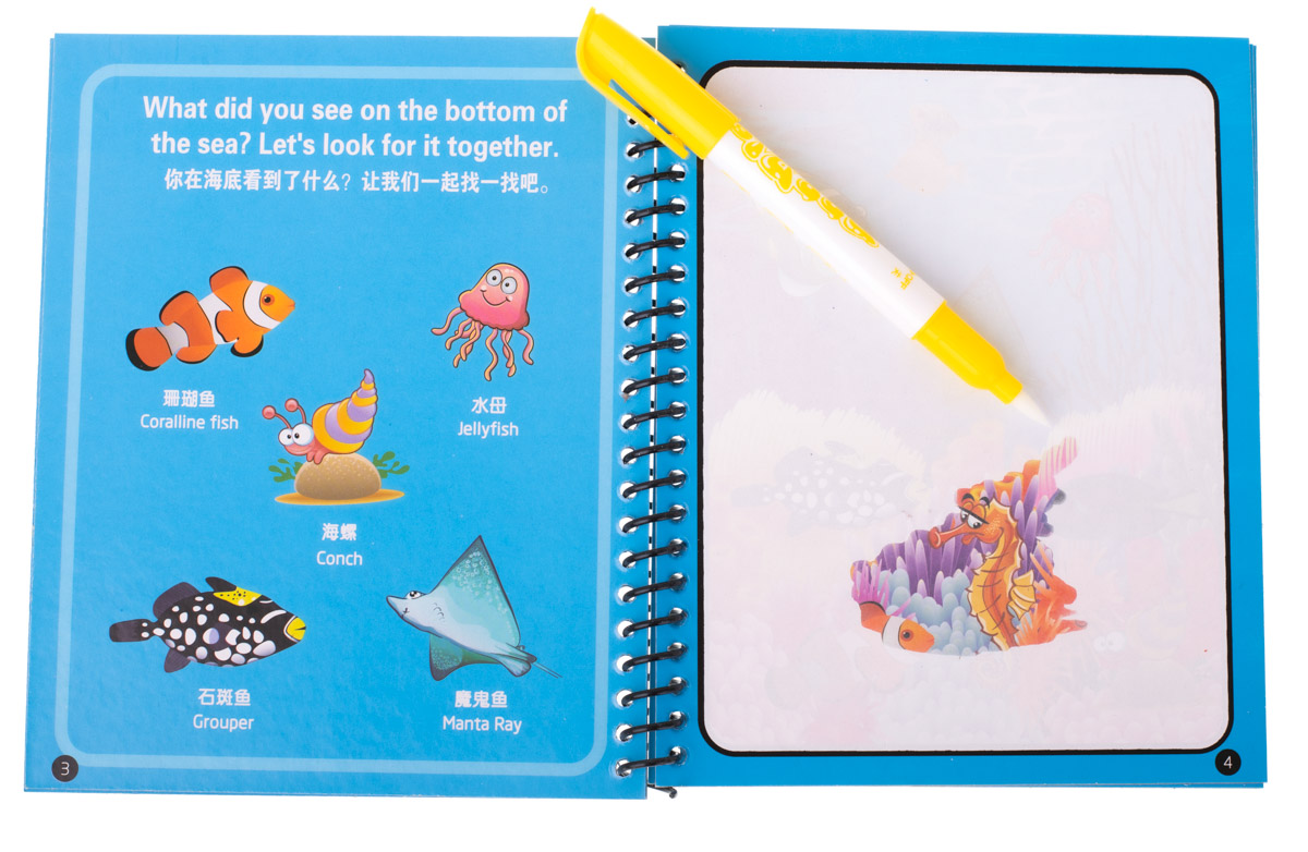 Kids Water Drawing Coloring Book with Marker, Sea Animals