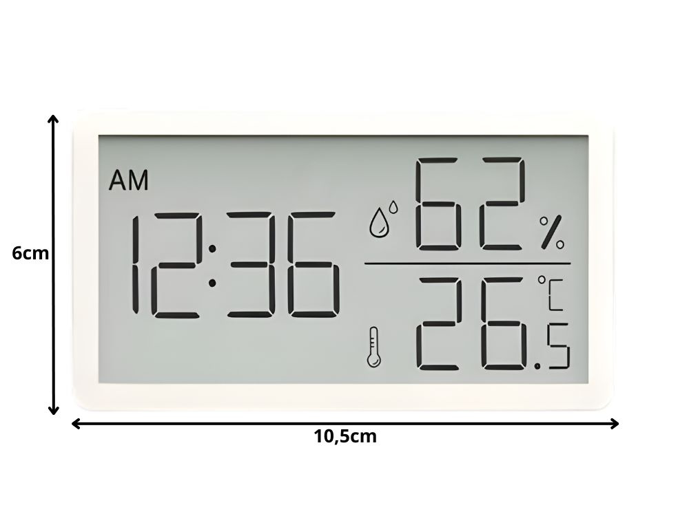 Monitor your indoor climate effortlessly with this modern digital thermometer and hygrometer. Designed to provide accurate temperature and humidity readings, this versatile device also features a built-in clock. It is the perfect accessory to help you maintain a healthy and comfortable environment in your home or office.