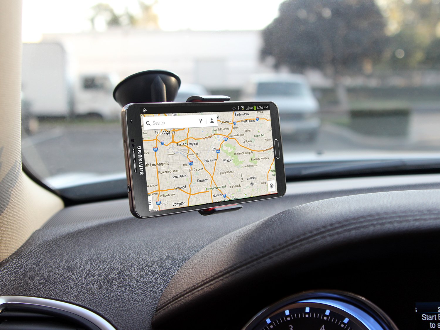 Easy to attach universal car holder with suction cup, fits all mobile phones and devices of similar size.