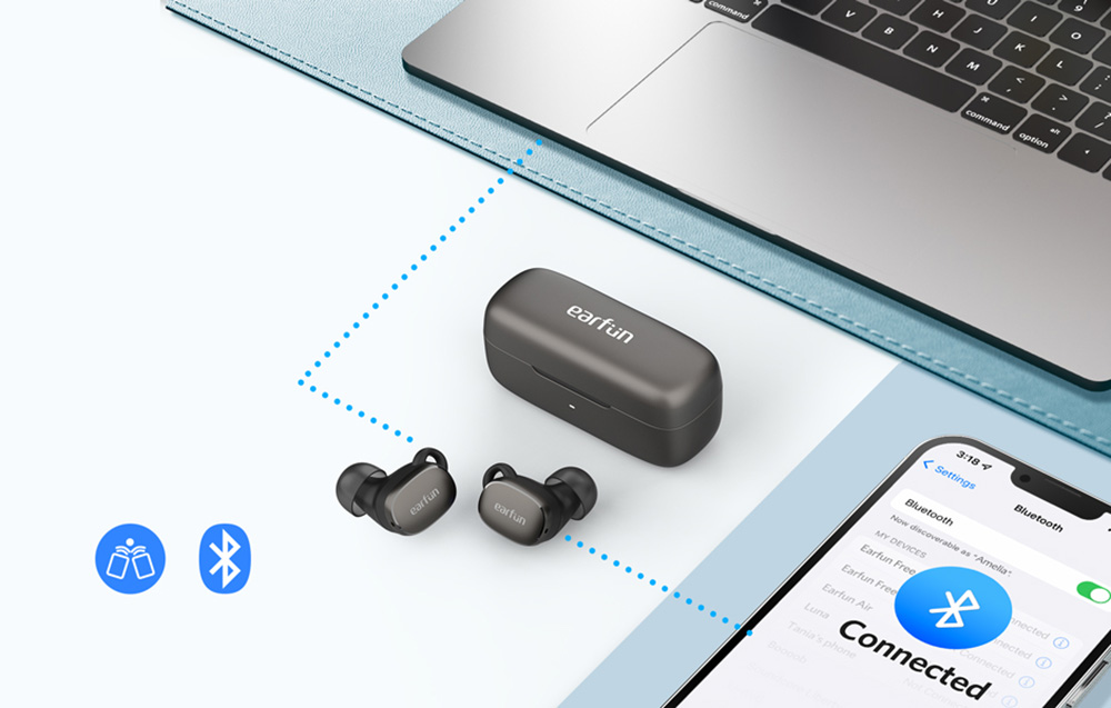 EarFun headphones were created with comfort in mind, so they use Bluetooth 5.3 technology, so you can be sure of a fast, stable and interference-free connection. What's more, pairing the headphones with the device of your choice is very easy and fast. In addition, if they are not connected to any equipment, they will automatically turn off after 10 minutes to save energy.