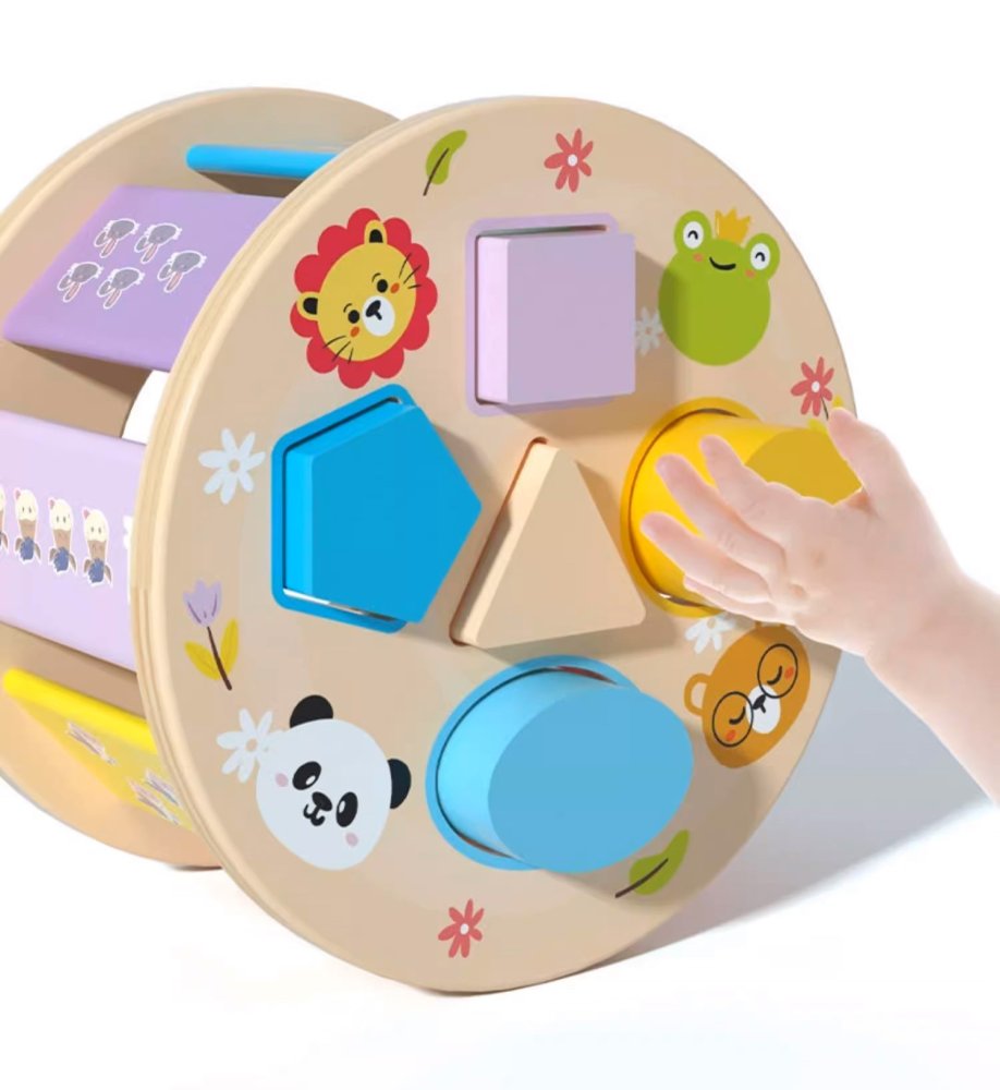 - Dual Functionality: Works as a pull-along toy and a detachable shape sorter drum.