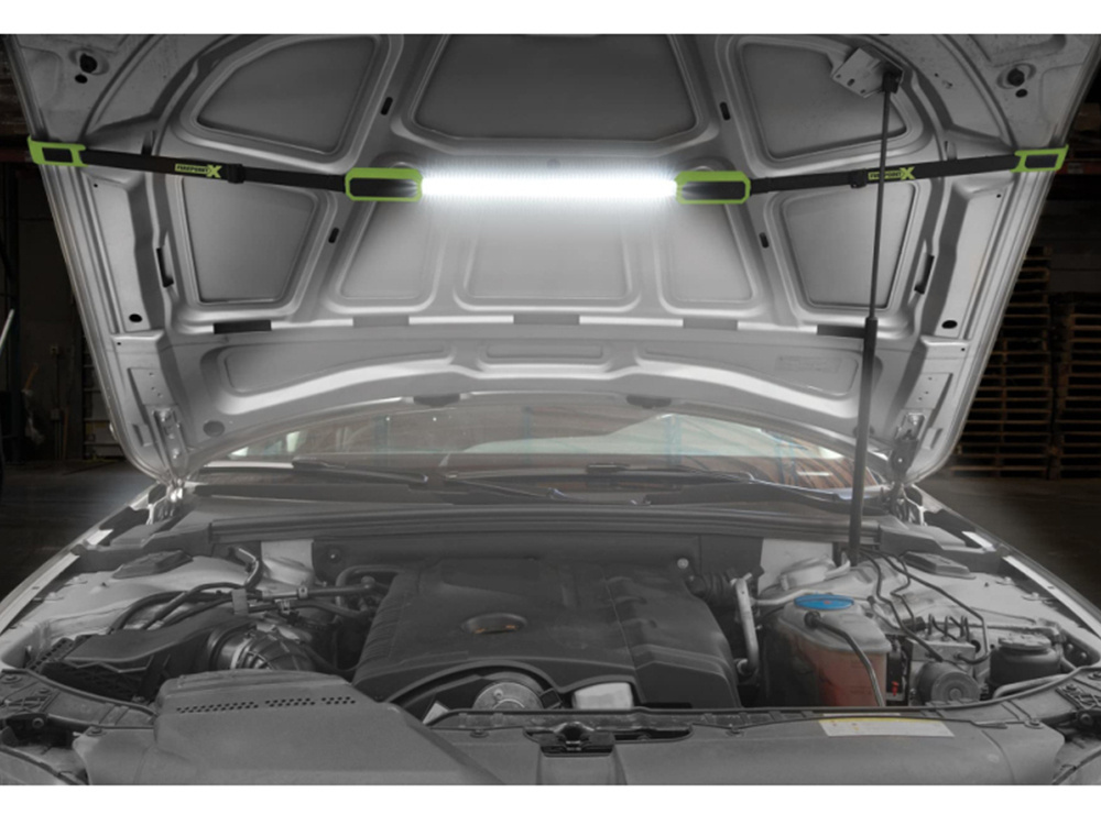 Universal LED workshop lamp with magnet and battery, 125–182 cm, for car hood