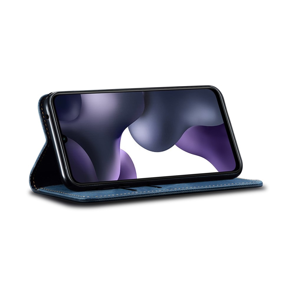 Xiaomi Mi 10 Lite Retro Style Jeans Cloth Case Cover with Card Slots, Blue