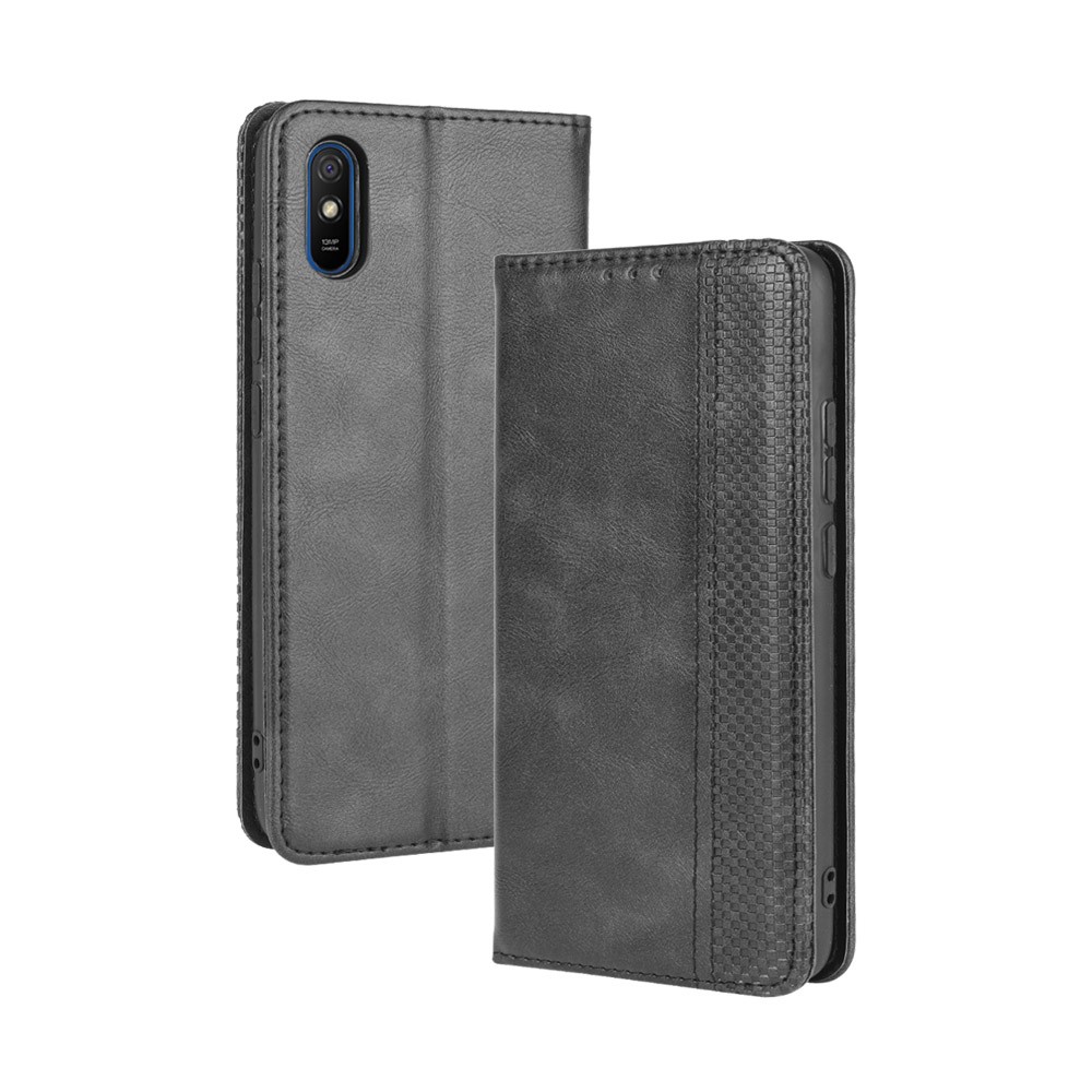 Xiaomi Redmi 9A PU Leather Retro Style Wallet Protective Cover Case, Black