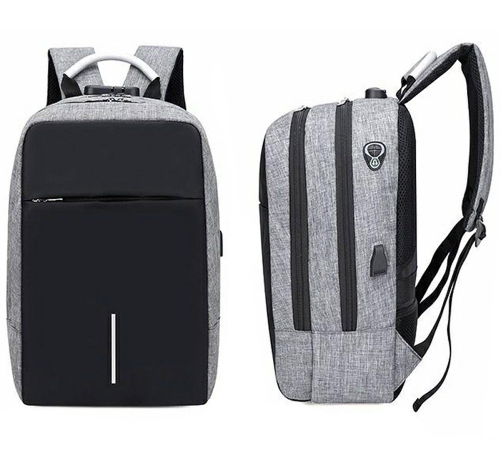 Ūdensizturīgs pretzagļu portatīvā datora mugursoma ar USB A, pelēka-melna