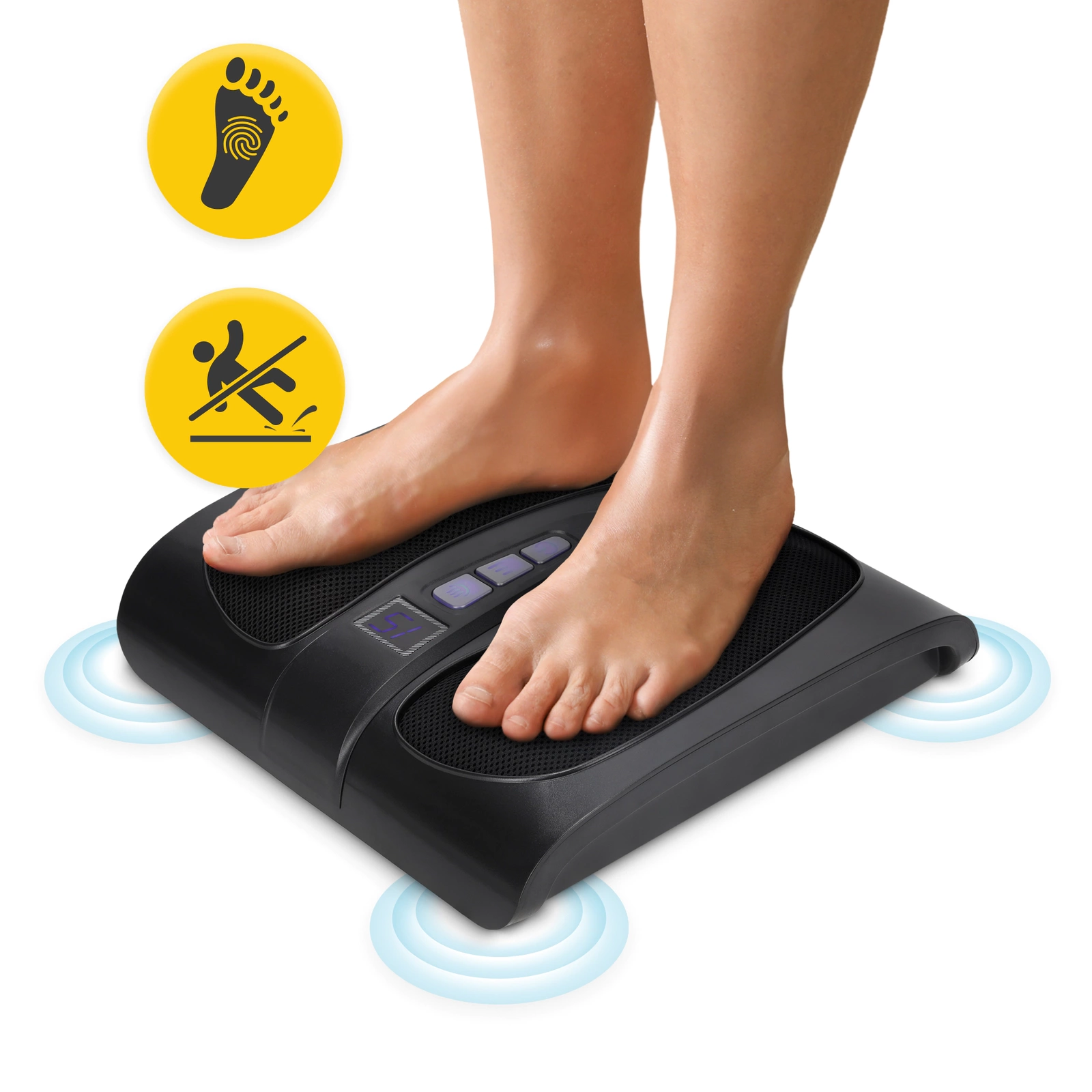 Šis vieglais un ergonomiskais masieris ar sildīšanas funkciju palīdz uzlabot asinsriti, mazināt muskuļu sasprindzinājumu un stresu. Tas ir vienkārši lietojams, pateicoties intuitīvam vadības panelim, un pielāgojas pēdas formai maksimālam komfortam.