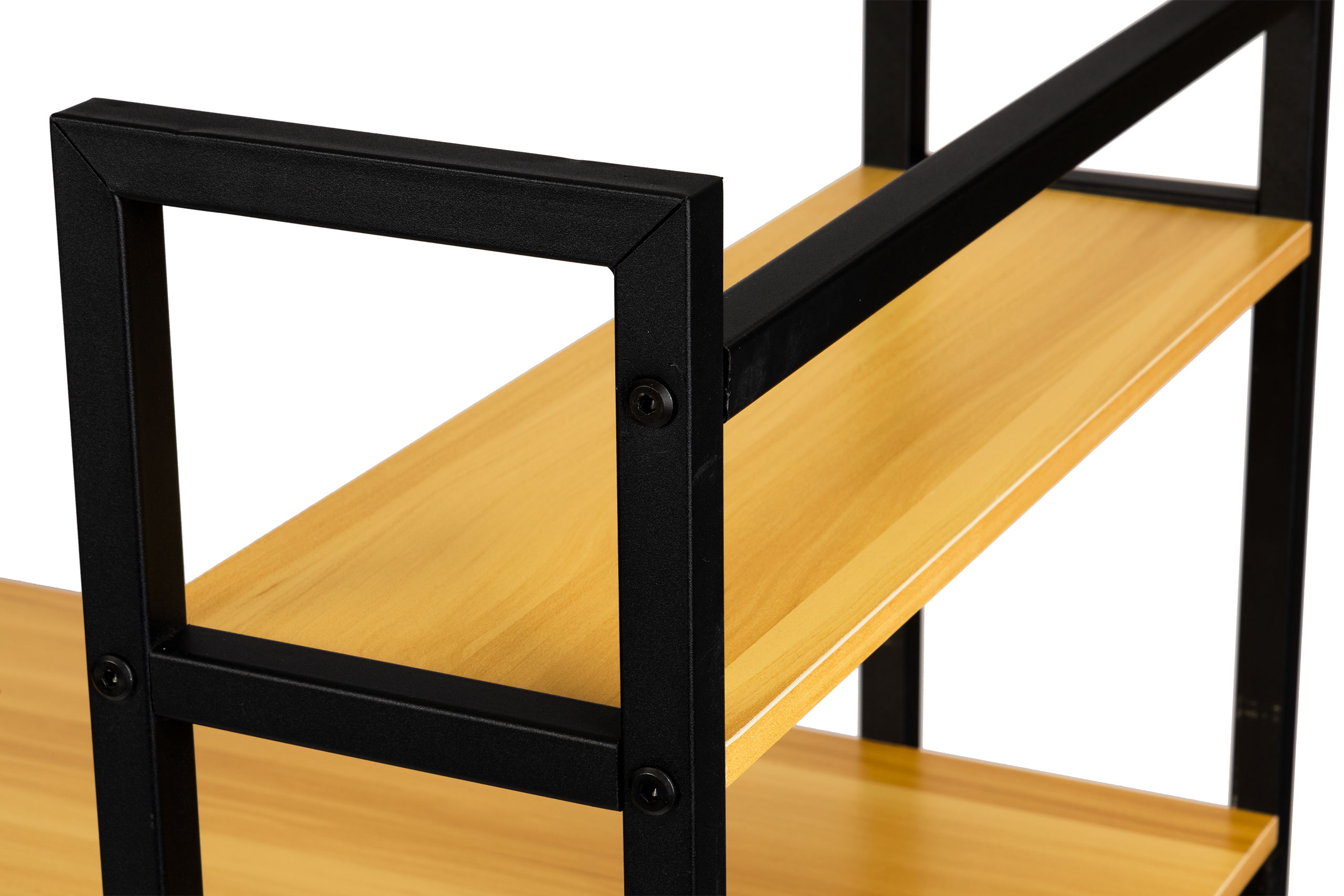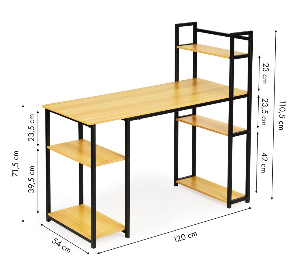 Mūsdienīgs datorgalds ar metāla rāmi, piemērots birojam un mājām. Stilīgs lofta dizains ar gaiša ozola virsmu un sešiem funkcionāliem sānu plauktiem nodrošina plašu darba vietu un ērtu uzglabāšanu.