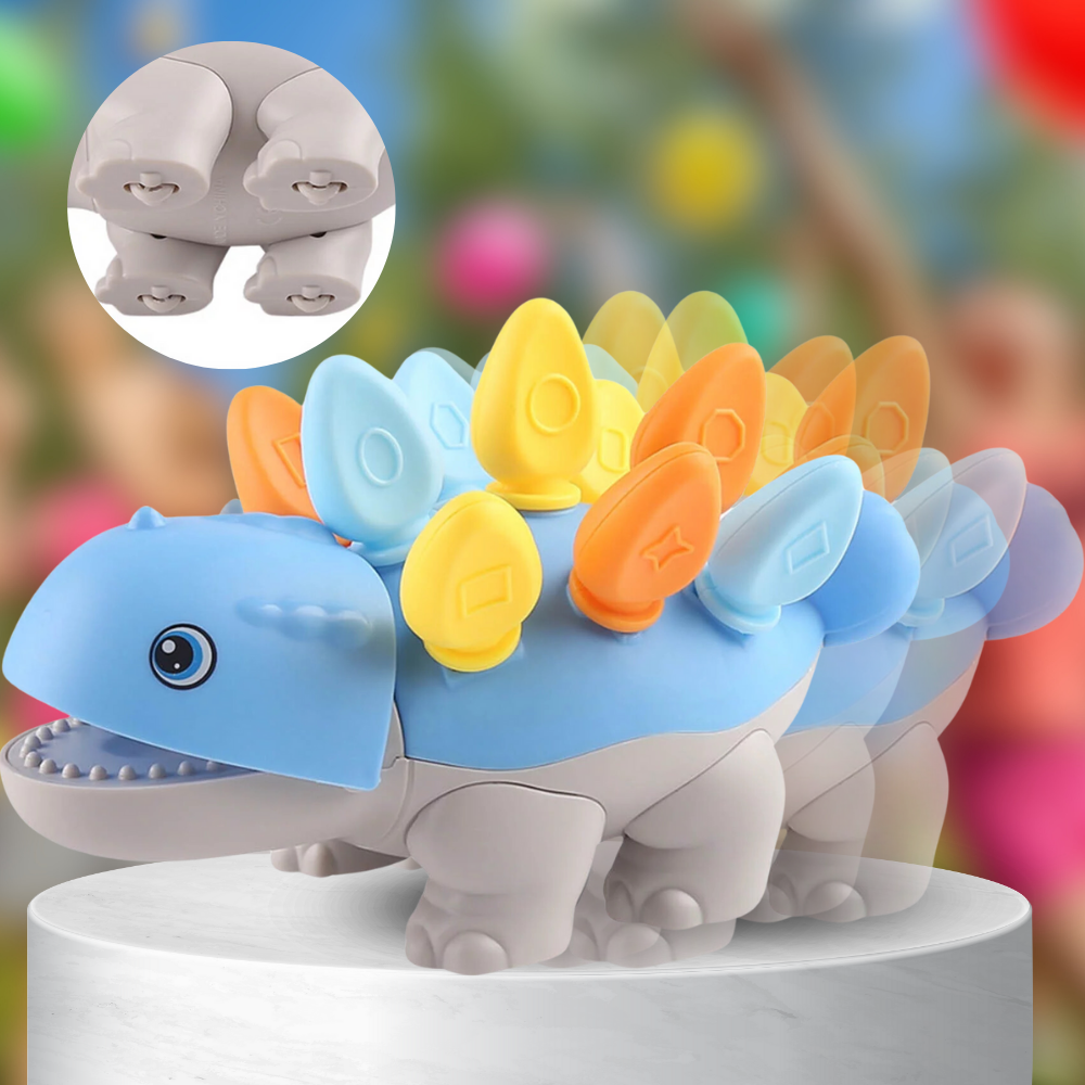 Draudzīgā ankilozaura mugurpusē iestiprinātās smailes detaļas motoriku. Krāsainie gabaliņi prasmes, izmantojot veiklības spēles.