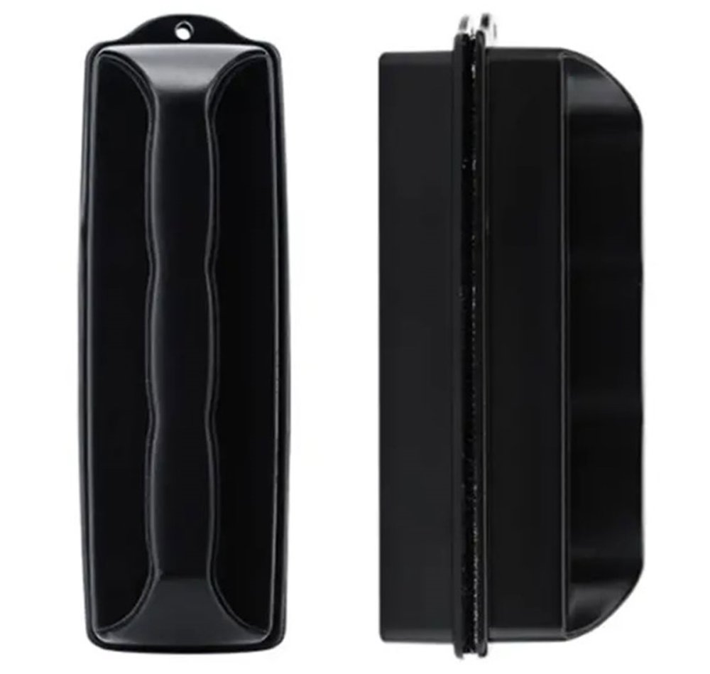 Скребок состоит из двух частей с мощными магнитами. Одна часть помещается внутрь аквариума, а другая перемещается по стеклу снаружи. Благодаря продуманной конструкции, очиститель плотно прилегает к стеклу, обеспечивая качественную чистку. Удобная ручка делает процесс максимально комфортным.