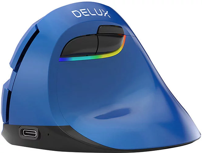 Беспроводная Вертикальная Компьютерная Мышка Delux M618Mini BT4.0 + 2.4Ghz 4000 DPI RGB, Синяя | Wireless Vertical Computer Mouse